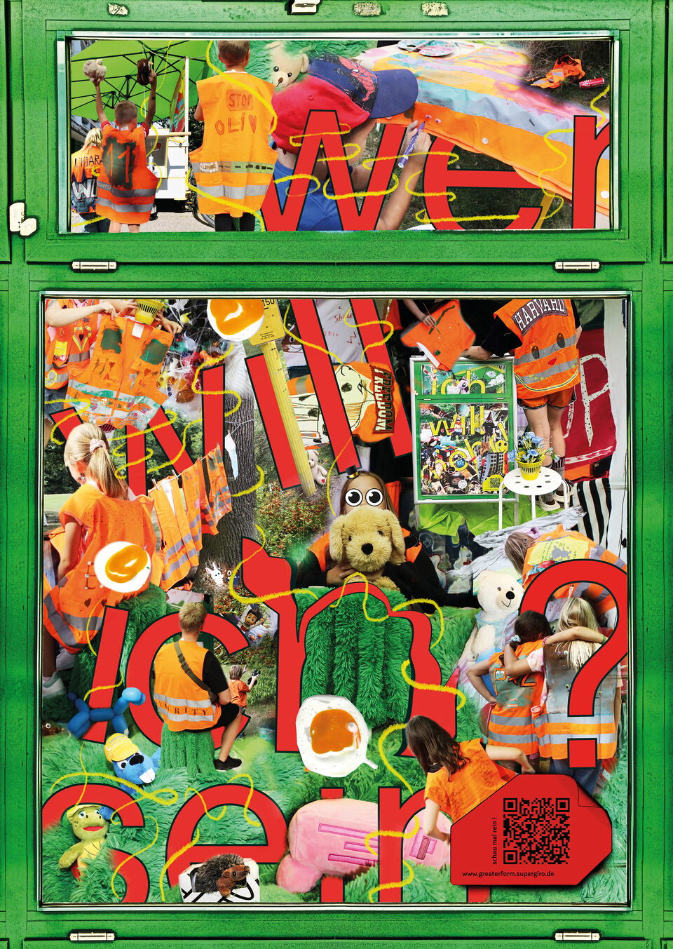 erzählen davon, wer wir gerne sein möchten. Und sie zeigen, was uns wichtig ist: Freundschaft, Fußballstars, Lieblingsbands oder Mode. Auch die vielen Kuscheltiere, die jetzt auf dem Plakat zu sehen sind, waren mit dabei. Im offenen künstlerischen Angebot begleiten sie uns als Spielgefährten, geben Raum für Emotionen und ein Gefühl von Sicherheit – für den Moment und für alles, was wir sein wollen. Und du? Wer willst du sein – und was brauchst du dafür?