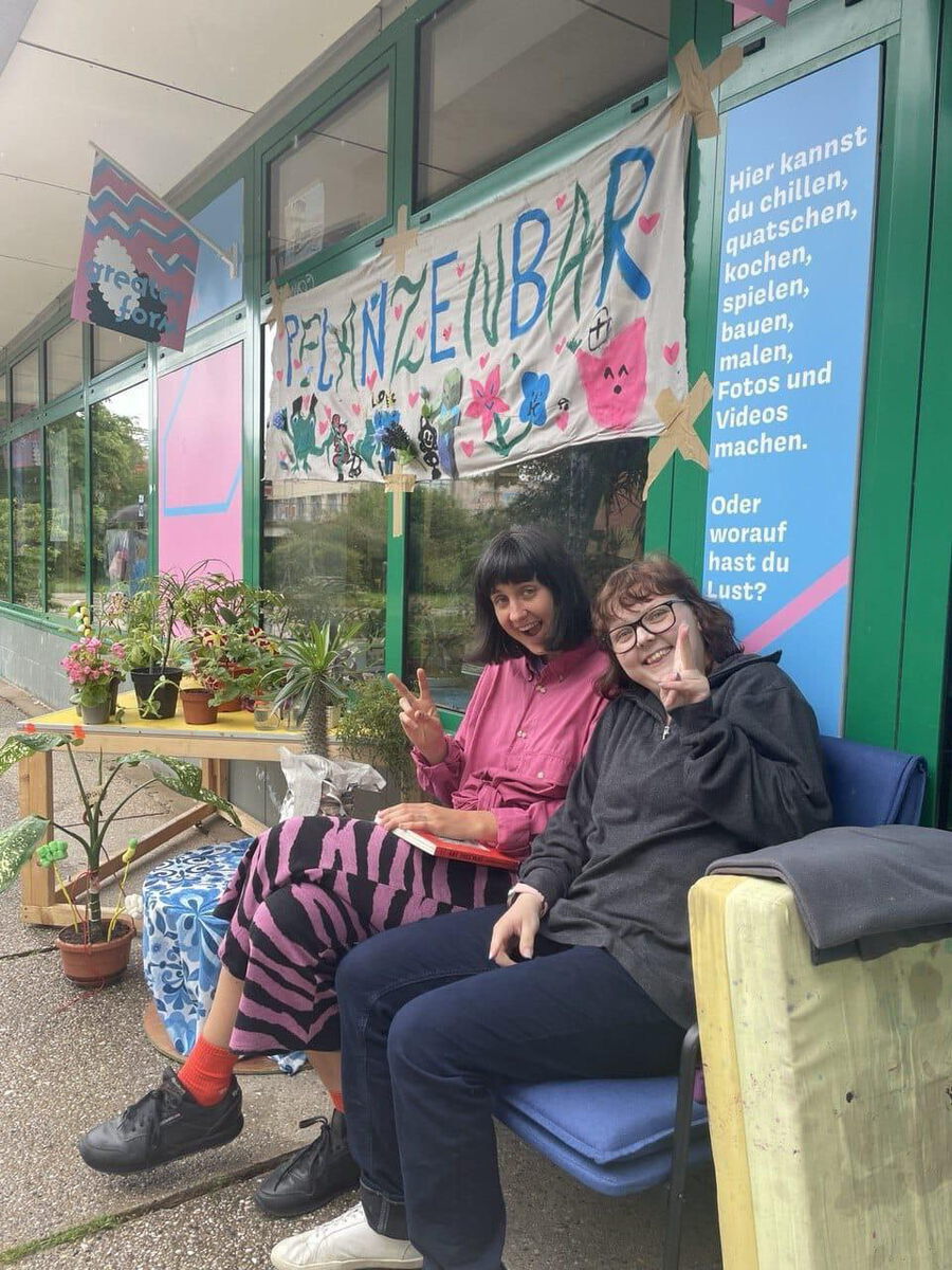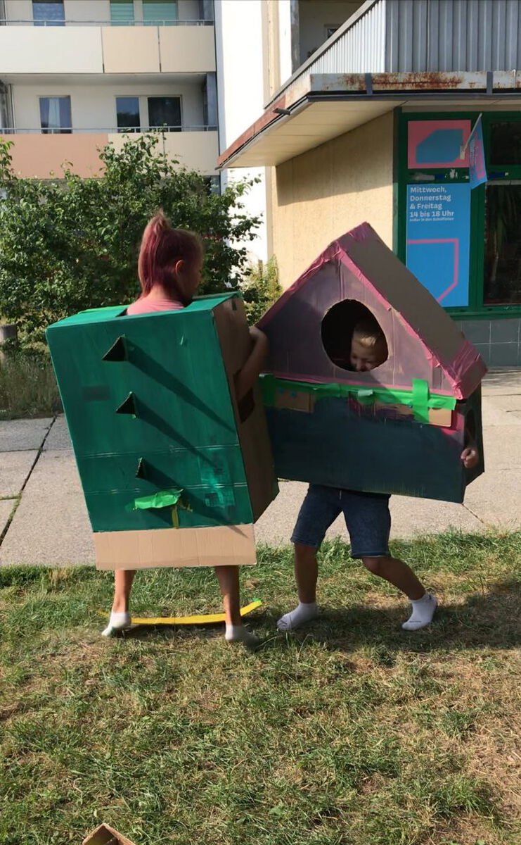 2024 haben sich greater form und die Kids aus dem Offenen Künstlerischen Angebot mit dem näheren Umfeld des gemeinsamen Projektraums in der Alten Salzstraße, dem Großwohnblock und seinen Bewohner:innen auseinandergesetzt. Wir erforschten zusammen die uns umgebenden Gemeinschaften künstlerisch und luden die Nachbarschaft in Aktionstagen zum Kennenlernen und Mitmachen ein. Das Projekt zielte darauf ab, Kinder und Jugendliche als Akteur:innen eines von ihnen mit verantworteten Community Buildings wirksam werden zu lassen, ihre Perspektive zu stärken und sichtbarer zu machen.
