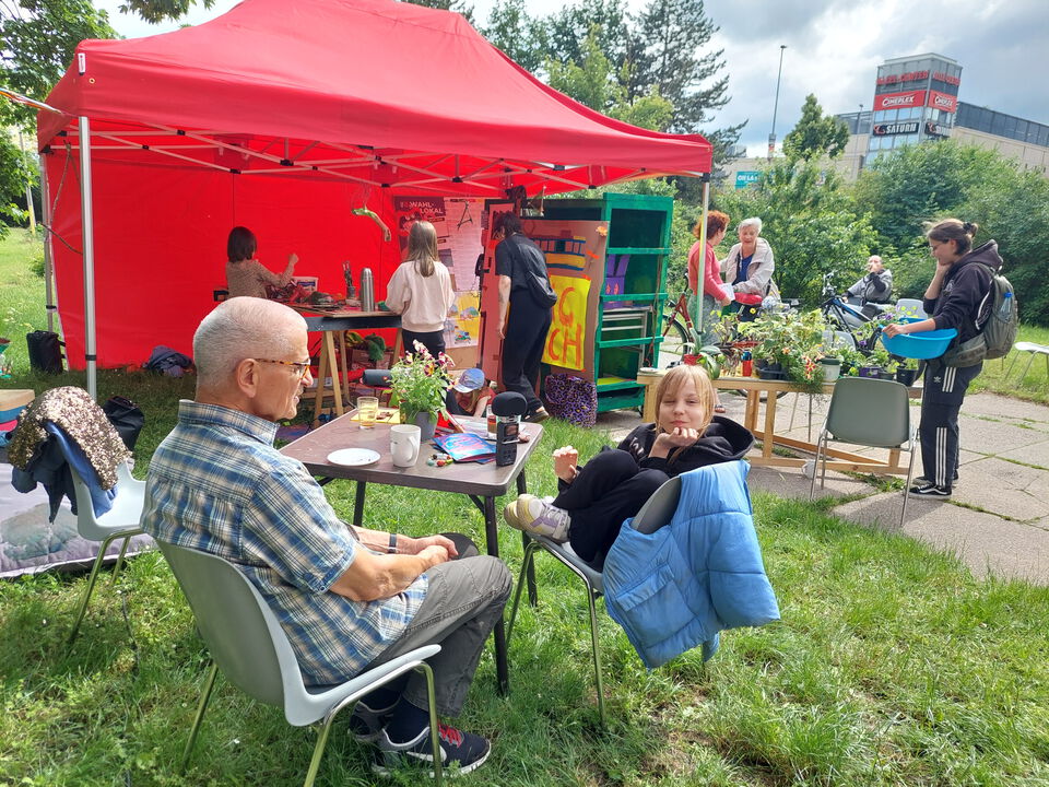 Pflanzen: Inspiriert von den vielen bepflanzten Balkonen im Wohnblock entstand eine Pflanzen-Tausch-Bar mit kreativer Mitmach-Station.