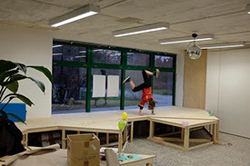 Ein neuer Raum zum Spielen, Rumhängen, Kunst machen. Für Kinder und Jugendliche in Grünau. Wir haben Mittwoch, Donnerstag und Freitag 14.00-18.00 geöffnet (außer in den Schulferien) - für Dich und alle, die Du kennst. Du findest uns beim Fußballplatz neben dem Allee-Center. Komm einfach vorbei!
